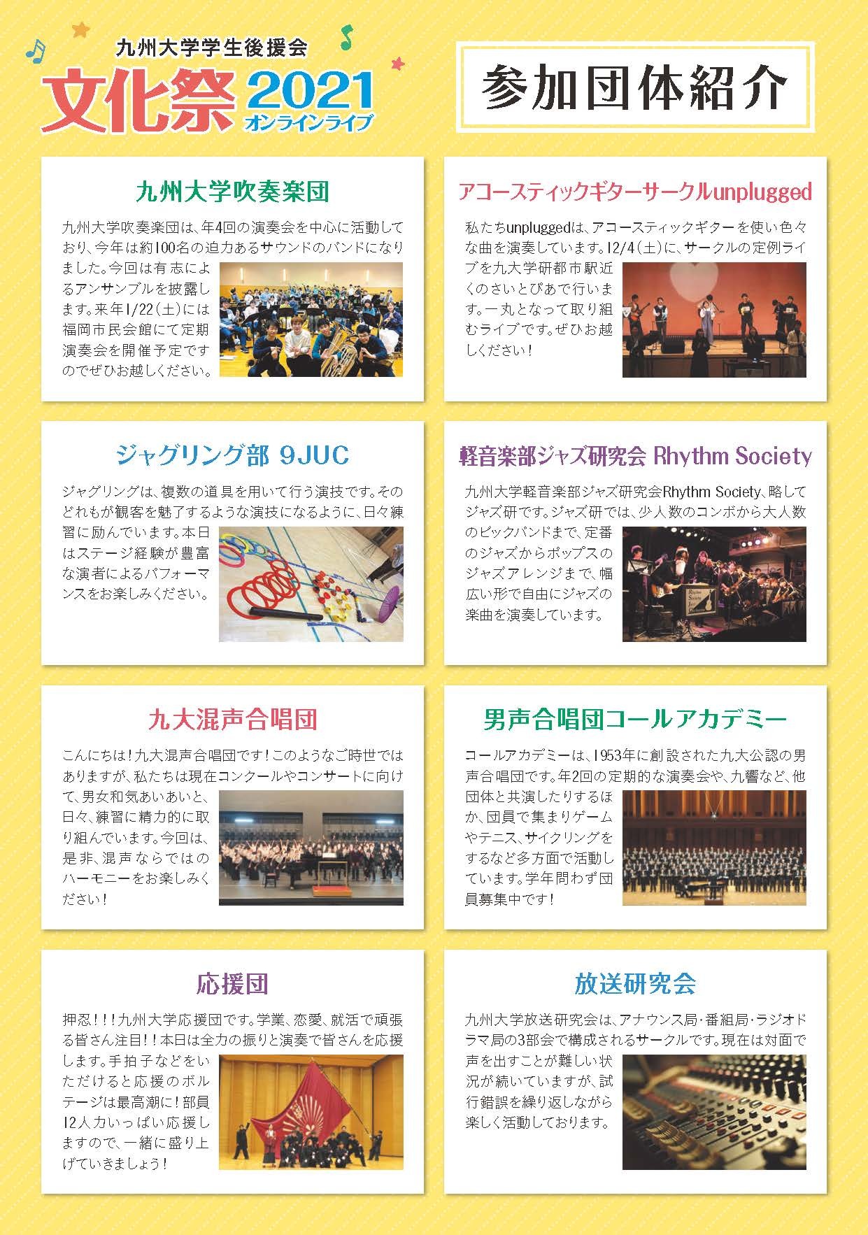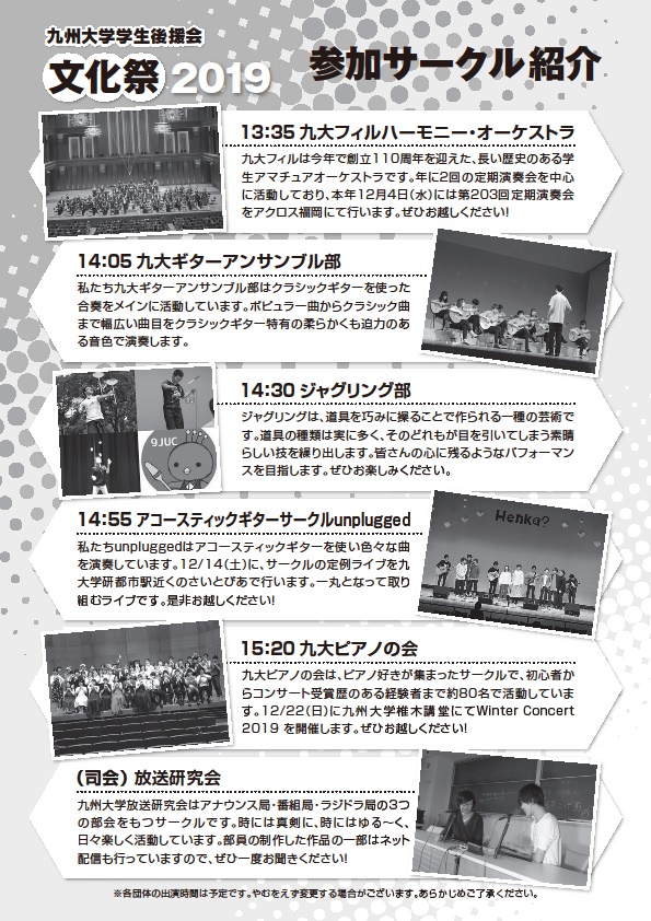 本年度もバラエティーに富んだ学生団体の出演を予定しています。